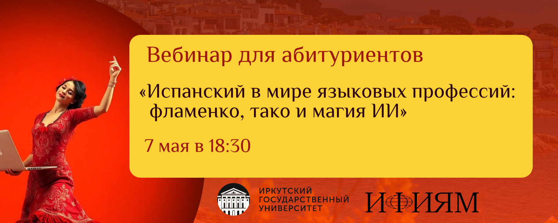 Кафедра романо-германской филологии ИФИЯМ ИГУ приглашает будущих абитуриентов принять участие в вебинаре «Испанский в мире языковых профессий: фламенко, тако и магия ИИ».